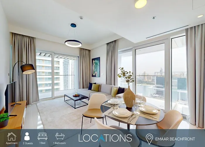 Das 76 m^2 große Apartment Grand Bleu - Luxurious One Bedroom With Sea View Dubai im Bezirk Palm Jumeirah von Dubai bietet WLAN und Wellnessangebote wie ein Hallenbad. Strand von Dubai Marina ist ca. 2 Kilometer von diesem Apartment entfernt, während Flaniermeile The Walk at JBR rund 10 Minuten mit dem Auto von hier entfernt ist.